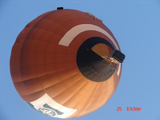As part of the pre-Derby festivities, we had a hot air balloon race last Friday followed by the Great Balloon Glow. Friday morning Daisy starting barking like a mad woman despite her barking collar and ran straight into the house. She could not be convinced that the balloons were friendly and stayed in the house for the rest of the morning. I can really appreciate the dog's ability to recognize what is "normal" and what is not. By the time I realized what was going on some of the balloons had already past, but I snapped what I could.